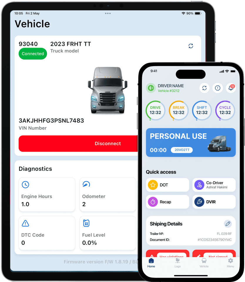 Our mobile solutions provide instant access to driver tracking, HOS compliance monitoring, and fleet management tools. Gain complete visibility into your fleet operations with real-time updates and comprehensive reporting capabilities that help you make informed decisions and optimize your compliance.